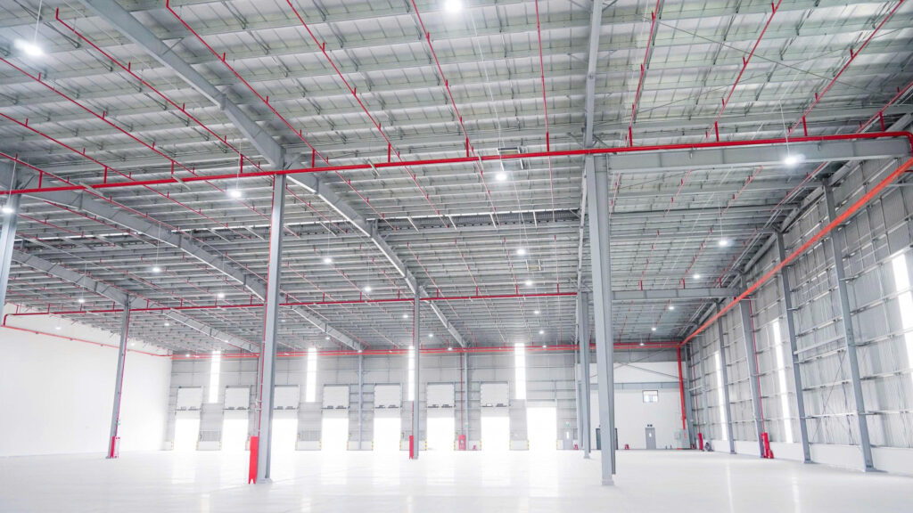 – Logistics / phân phối: Tập trung vào chiều cao sàn – trần, số lượng cửa dock, luồng xe container và tốc độ xuất – nhập hàng. Yếu tố quyết định: hiệu suất lưu chuyển hàng hóa.